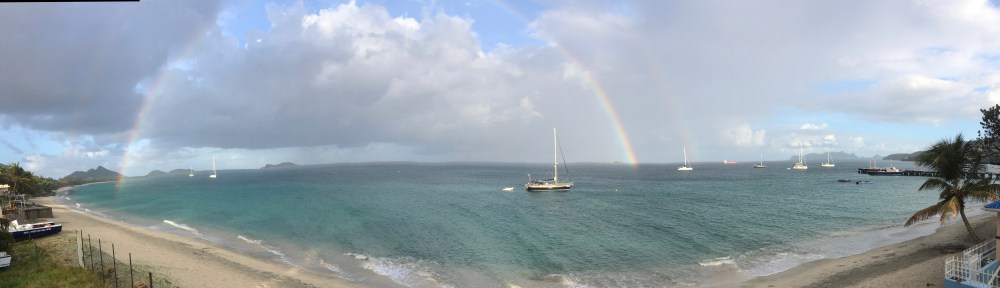 We love it here, live in our comfortable bubble, enjoy the splendid weather – especially when we check the nasty temperatures and storms back home – and basically lounge (called liming in local parlance) around all day like seals, watching the pelicans fish, the sail boats, yachts and tall ships cruise by or anchor out front. Every day is capped by spectacular sunsets into the blue Caribbean waters. Time slips by languidly, world politics are remote and depressing and we consider ourselves blessed by our good fortune and the choices we made.