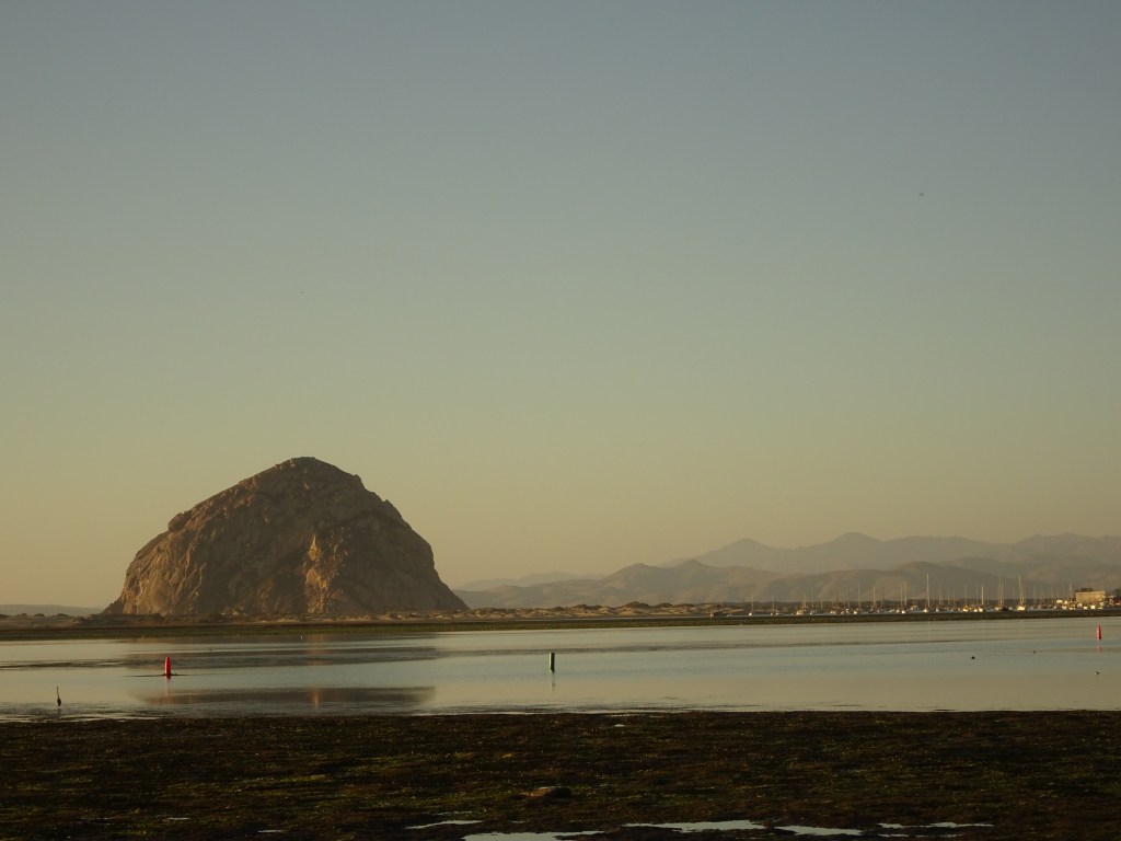 The next morning, we walked the boardwalk again along the estuary and saw a myriad of birds: flocks of cormorants, egrets, solitary herons and sandpipers and cruising above us falcons looking for easy prey. Even the odd monarch butterfly flitted by. We checked out the seaside village with all the galleries, tourist and surf shops, had the best roast beef sandwich at the Hofbrau waterfront café and watched the lazy sea-otters and sealions along the active harbour front. In the near distance loomed Morro Rock, a colossal plug left over from an ancient volcano and the defining landmark. We walked to the Inn on the Park which offered Happy Hour specials and spectacular views of the rock and sunsets on the bay. The weather was a balmy 20+ degrees. Life was good.